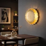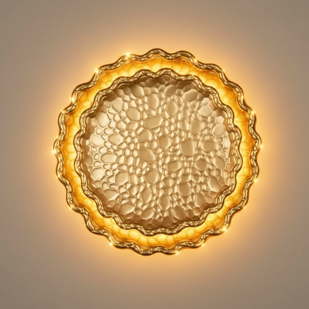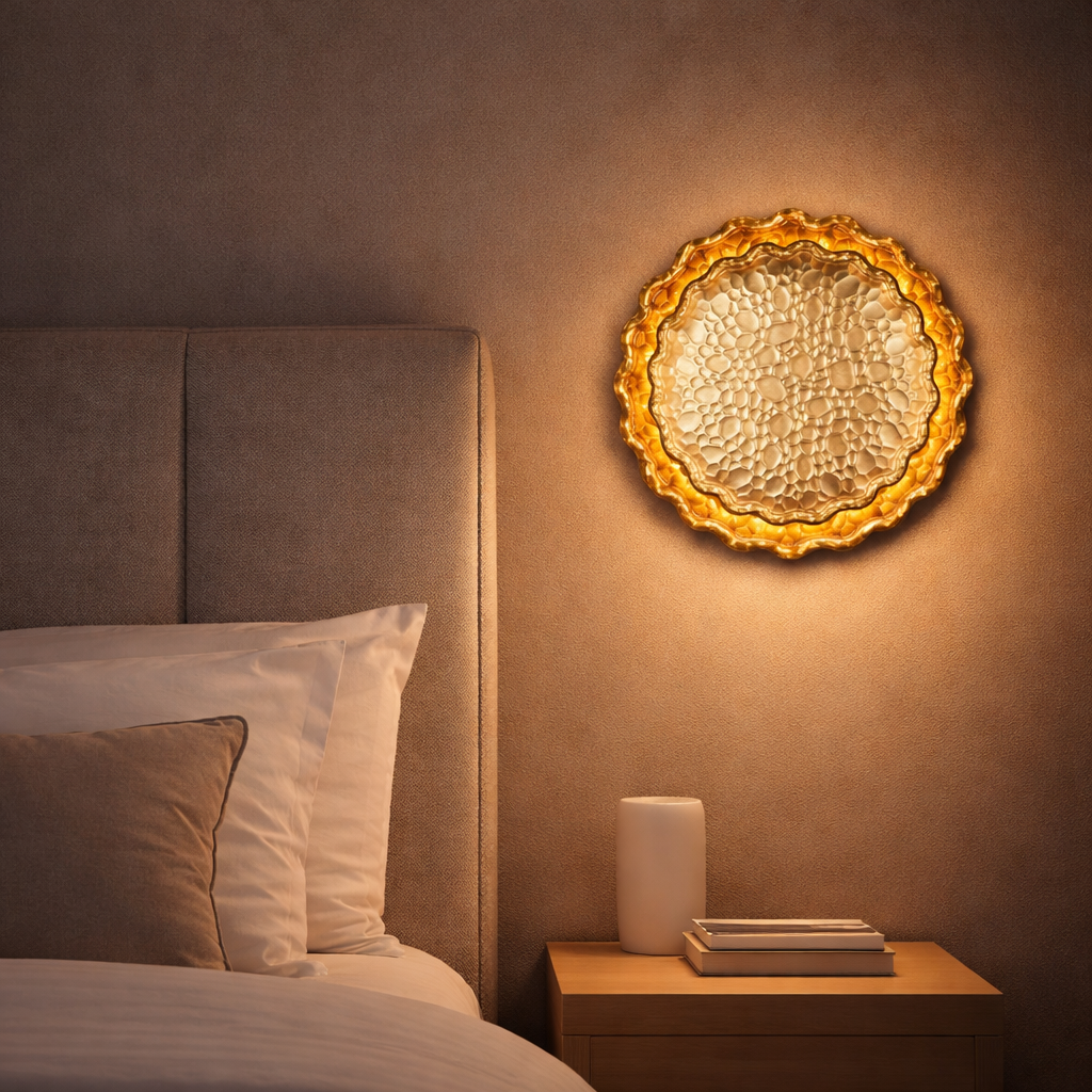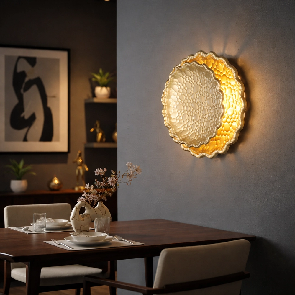 A textured porcelain pod blooms outward with golden underbelly glow, evoking a lunar lotus pod harvested from mist-shrouded midnight ponds. This ethereal orb graces bohemian dining nooks, zen gallery walls, and orchid-draped salons where soft luminescence nurtures nocturnal reverie.