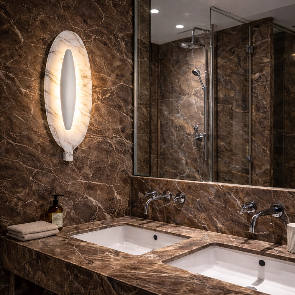 Perfect for bedrooms, hallways, hotel corridors, and living room feature walls, this designer wall lamp doubles as illuminated wall art. Its neutral marble texture pairs effortlessly with contemporary, minimalist, and luxury interiors while adding a high-end boutique hotel vibe to any space.