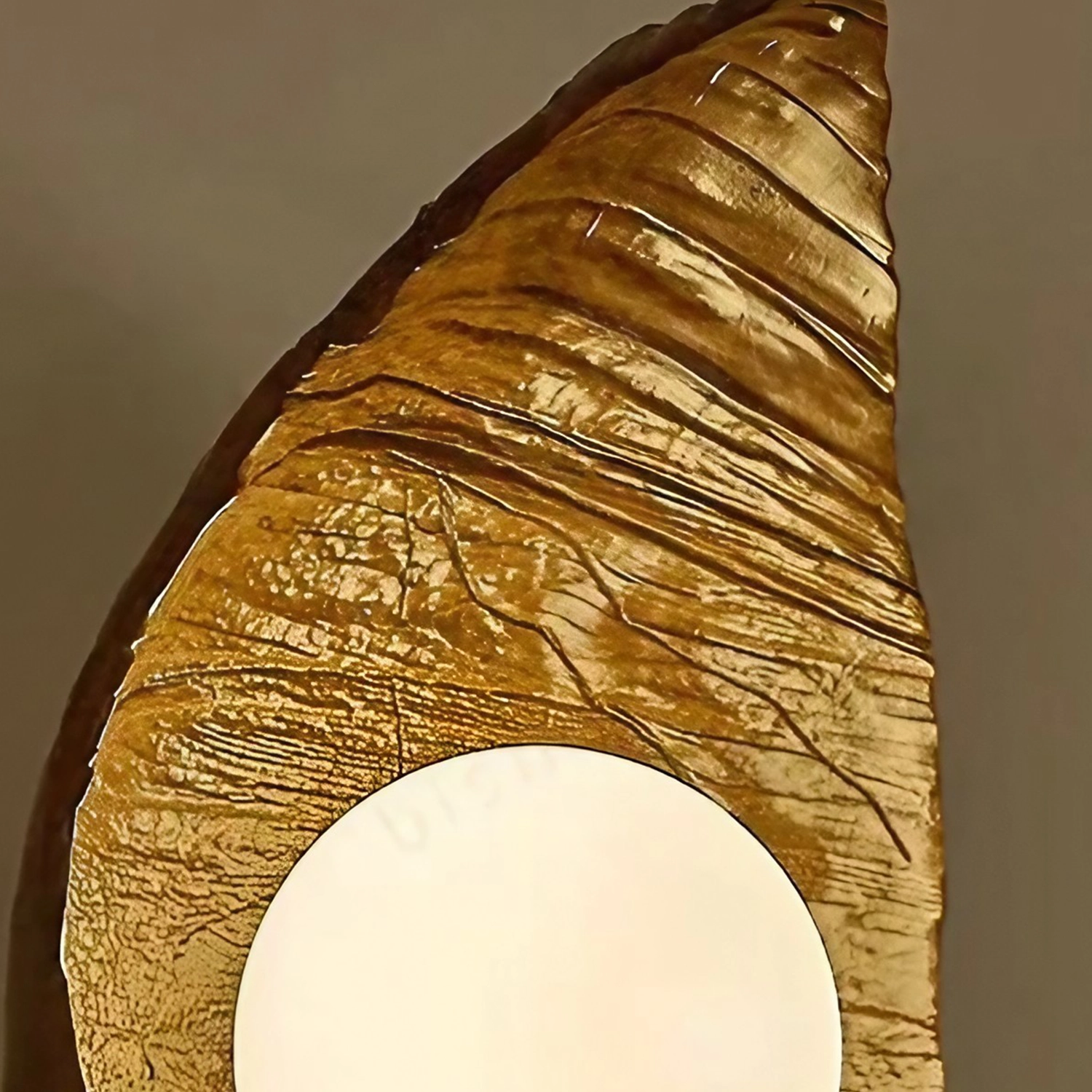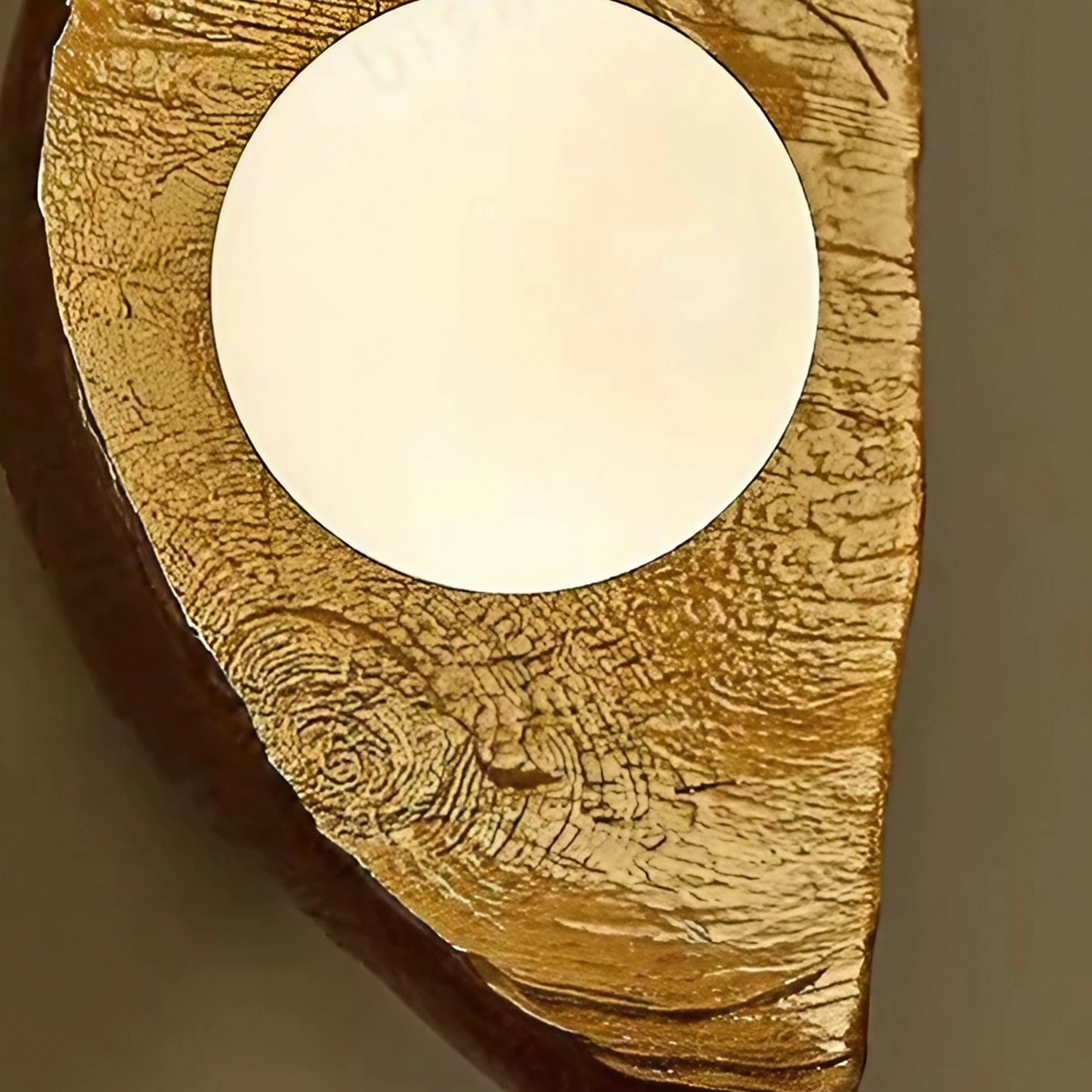 TimberHalo blends a sculpted wood-effect body with a glowing circular diffuser to create a warm, rustic wall light. The organic resin “log slice” texture and central halo of light make it look like a lit tree core, adding instant character to neutral walls.