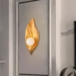 Illuminate your home with the Veridian Glow Gold Leaf Wall Lamp. This nature-inspired wall sconce features an exquisite brass leaf design cradling a soft, diffused orb light. A luxurious modern decorative lamp, it adds organic elegance and ambient lighting to any space. Perfect for bedrooms, living rooms, or entryways, this artistic wall light creates a serene and sophisticated atmosphere.