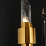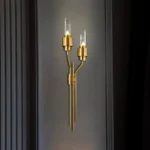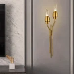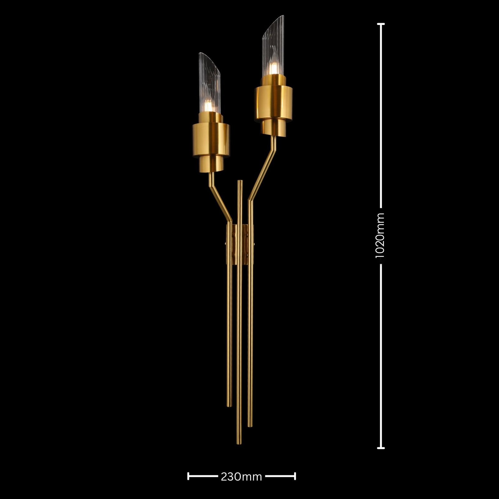 Illuminate your contemporary space with the Vertex Glow Contemporary Dual Sconce, a design marvel that combines sleek lines with captivating light diffusion. Featuring a refined matte gold finish and two distinct fluted glass diffusers, this wall-mounted luminaire offers a sophisticated aesthetic. Its upward-angled lights are perfect for creating soft, ambient illumination in hallways, above sideboards, or flanking a fireplace. The clean, vertical elements of the design add a sense of height and modern elegance to any room. The Vertex Glow is an excellent choice for those seeking a stylish, yet understated, lighting solution that complements a range of interior styles from minimalist to transitional, enhancing both visual appeal and comfort.