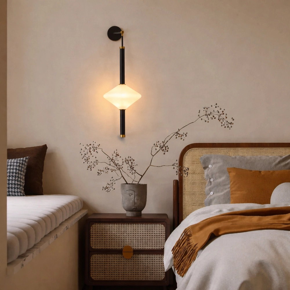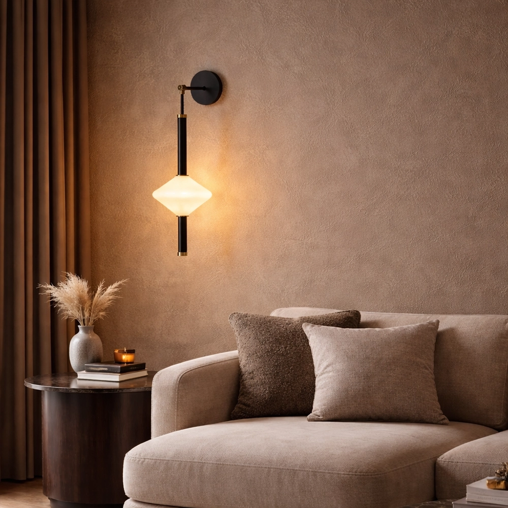 The Virello AxisLume Wall Sconce is a contemporary designer wall light crafted for modern interiors that value both function and refined aesthetics. Featuring a sleek matte black metal arm with brushed brass joint accents, this wall-mounted fixture offers adjustable positioning for targeted illumination.